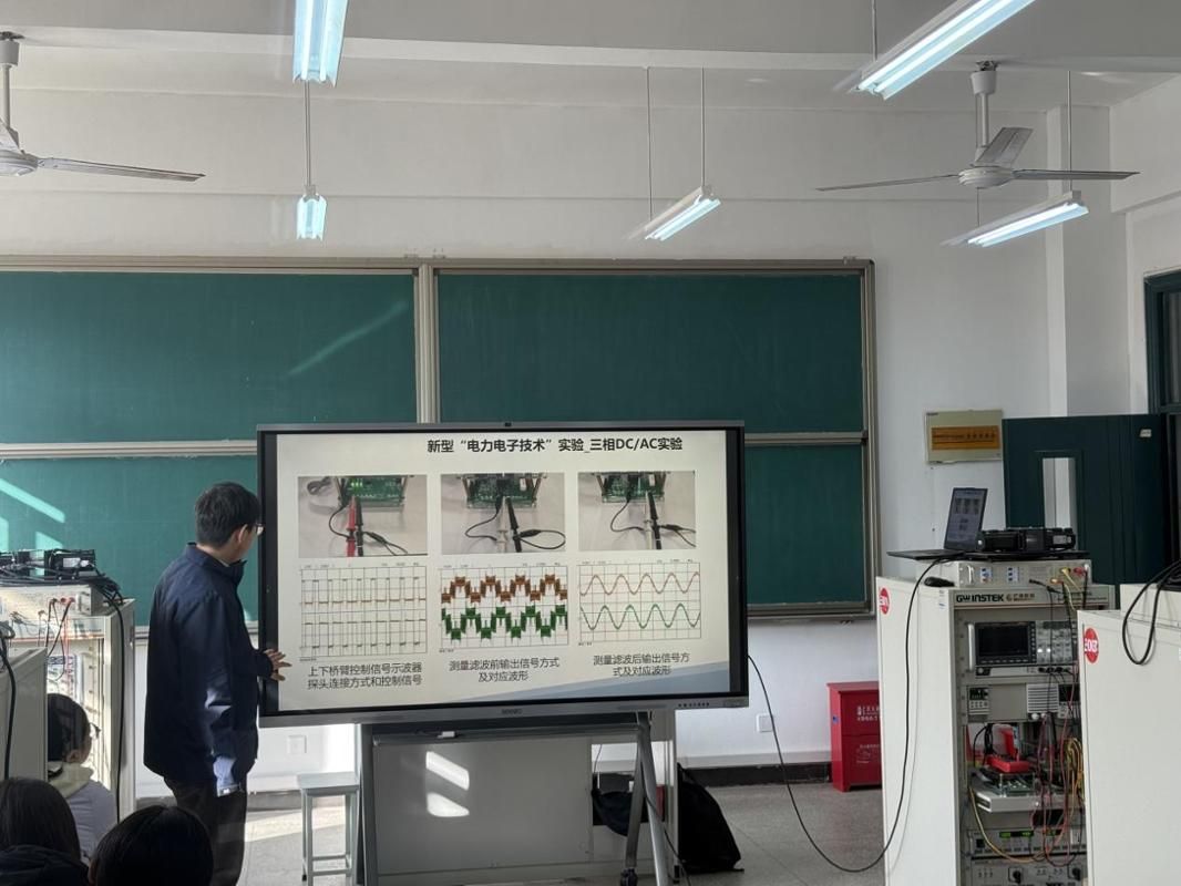 考察期间,淮南师范学院机械与电气工程学院领导及相关专业负责人热情接待了我校教师团队。在学院领导的陪同下,李明主任一行实地参观了电力电子与新能源微电网校企联合实践基地。该基地是学院与行业企业深度共建的综合性实践平台,集教学、实训、研发于一体,充分展示了其在电力电子变换、新能源发电、微电网运行控制及储能技术等领域的先进设施与教学场景。参观过程中,基地负责人详细介绍了实践基地的建设理念、运营模式以及在学生工程实践能力培养、产学研合作等方面取得的显著成果。双方教师就微电网系统的关键技术、实验课程设计、学生创新项目指导以及如何有效对接产业需求等问题进行了现场探讨与交流。