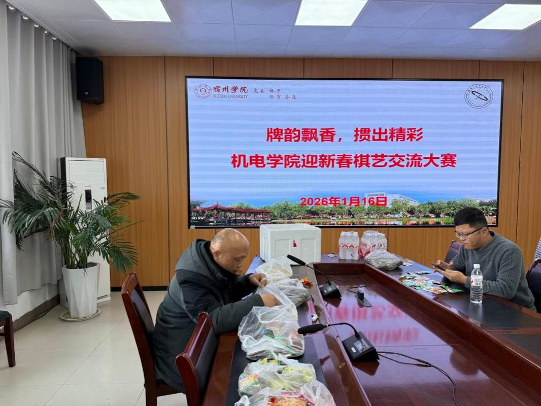 1月16日,为丰富教职工课余文化生活,传承中华传统益智文化,增强学院凝聚力,喜迎农历丙午新春,机械与电子工程学院工会主办的2026年教职工棋牌大赛在学院会议室顺利开展。本次大赛以 “以棋益智、以牌聚力、以赛会友” 为主题,采用 “抽签对阵 + 分组淘汰” 的赛制,确保公平公正。经过半天的多轮激烈角逐,各个项目分别产生了优胜者。
