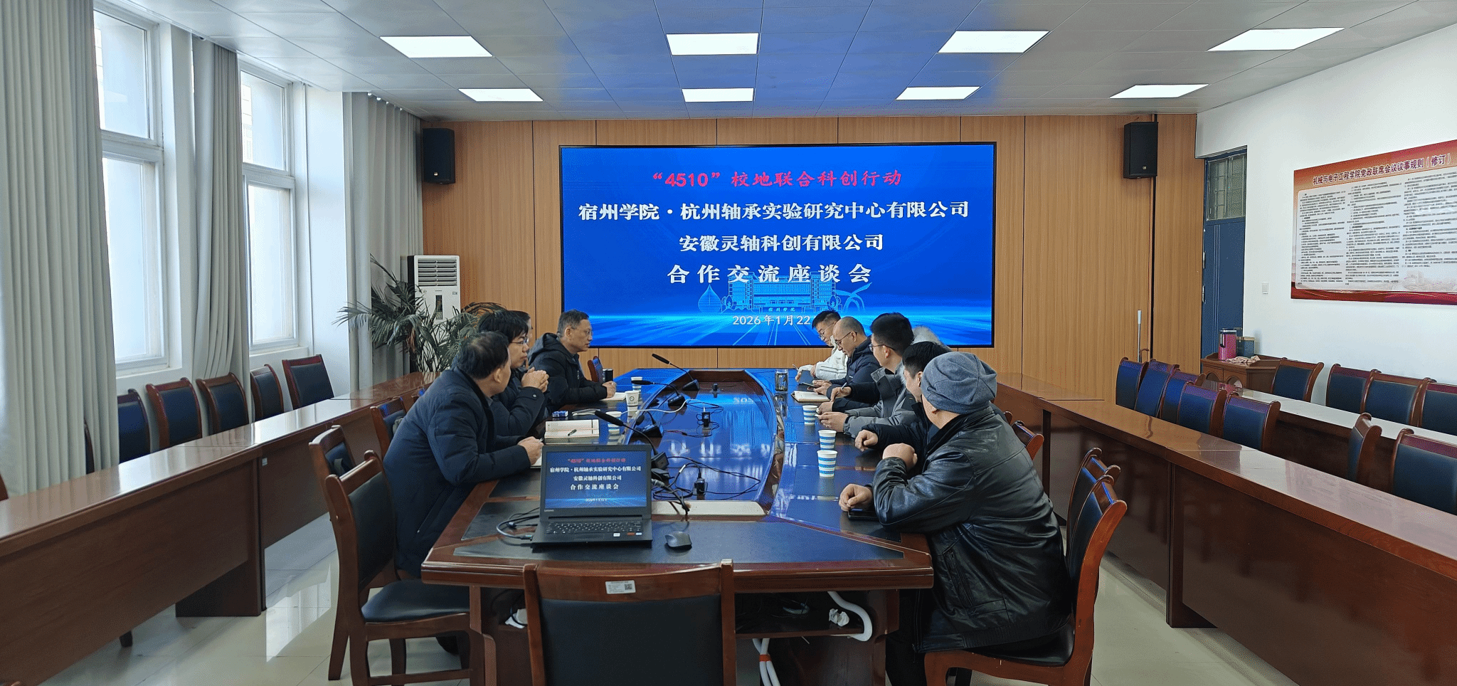 为持续深化“4510”校地联合科创行动,1月22日,我院与杭州轴承试验研究中心有限公司、灵轴科创有限公司举行合作交流座谈会,商谈校地合作,加强机械专业建设和人才培养。院党委书记黄凯、副院长(临时负责)刘从虎及部分专业博士教师参加了活动。