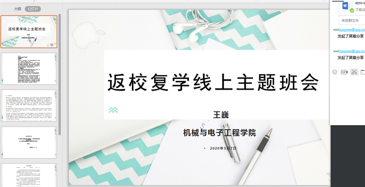 为做好返校复学工作,扎实落实学校疫情防控决策部署,5月7日,机电学院组织辅导员、班主任针对各自所带班级召开返校复学安全工作线上主题班会。