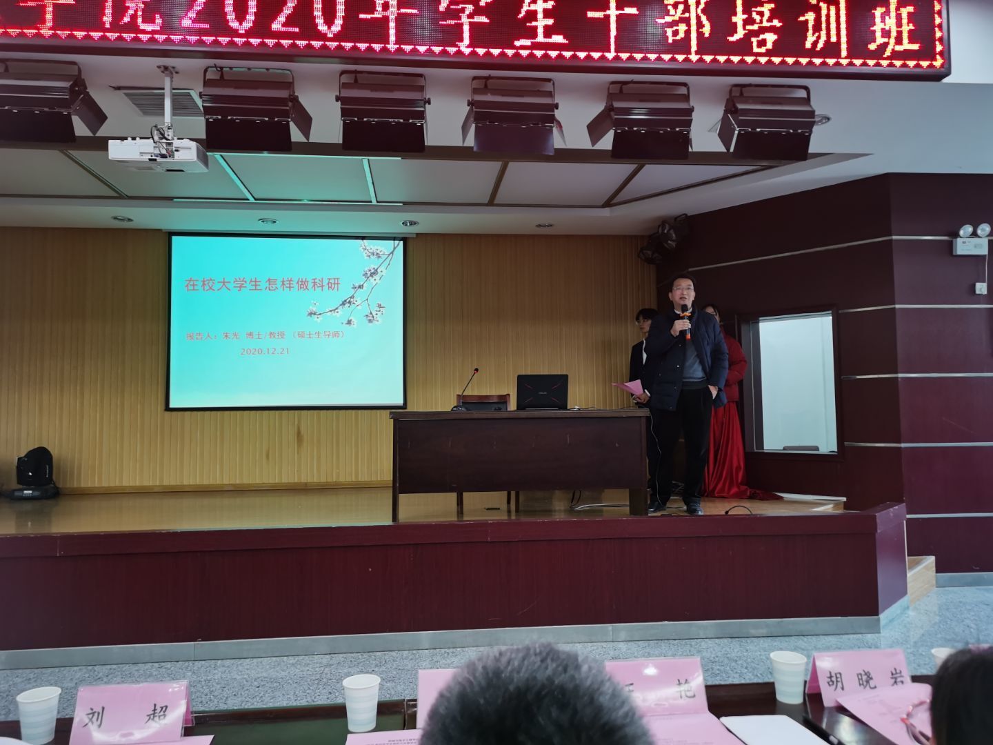 12月22日,机电学院副院长朱光在招聘大厅作了题为《在校大学生怎样做科研》的专题报告。机电学院全体辅导员、班主任及学生干部聆听了报告。