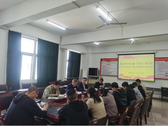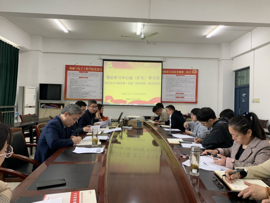 4月30日下午,机电学院在工科C楼302会议室召开理论学习中心组(扩大)学习会暨党史学习教育第一专题“学史明理”研讨交流会。会议由党委书记刘超主持,党委委员、科级以上干部、各党支部书记、教研室主任参加会议。