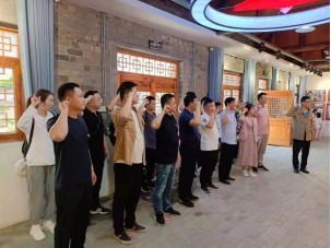 2021年6月19日上午,机械制造研室教师党支部组织全体党员联合学生党支部前往栏杆镇皖东北抗日根据地,开展“学党史铸初心”主题党日活动,参观红色革命基地,了解那段历史,重燃红色革命情怀,引导党支部全体党员及学生党员学史明理、学史增信、学史崇德、学史力行。