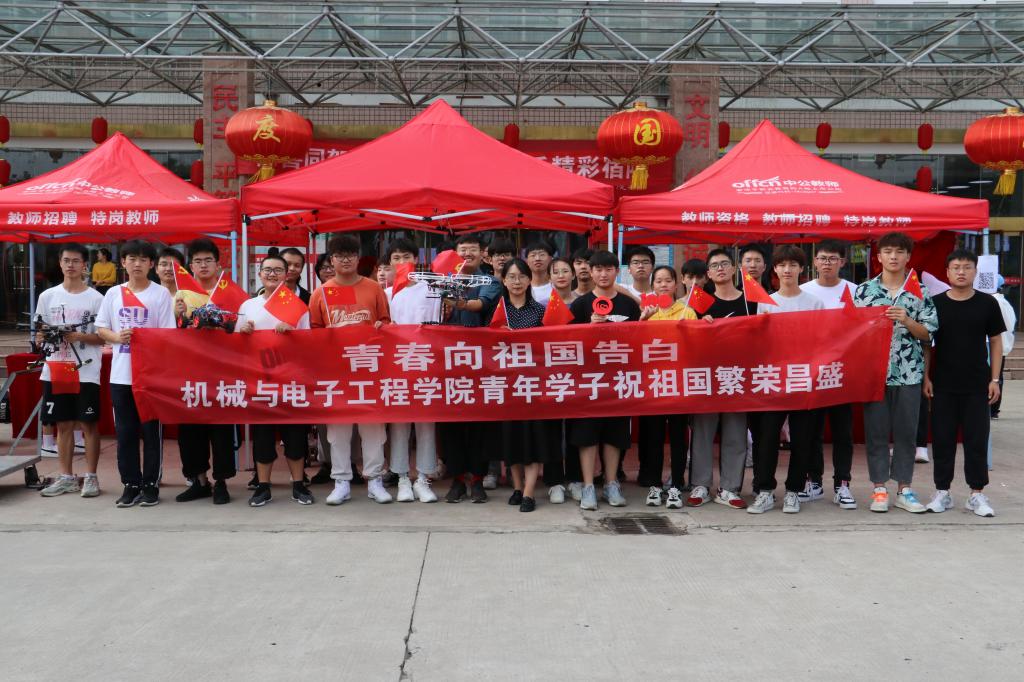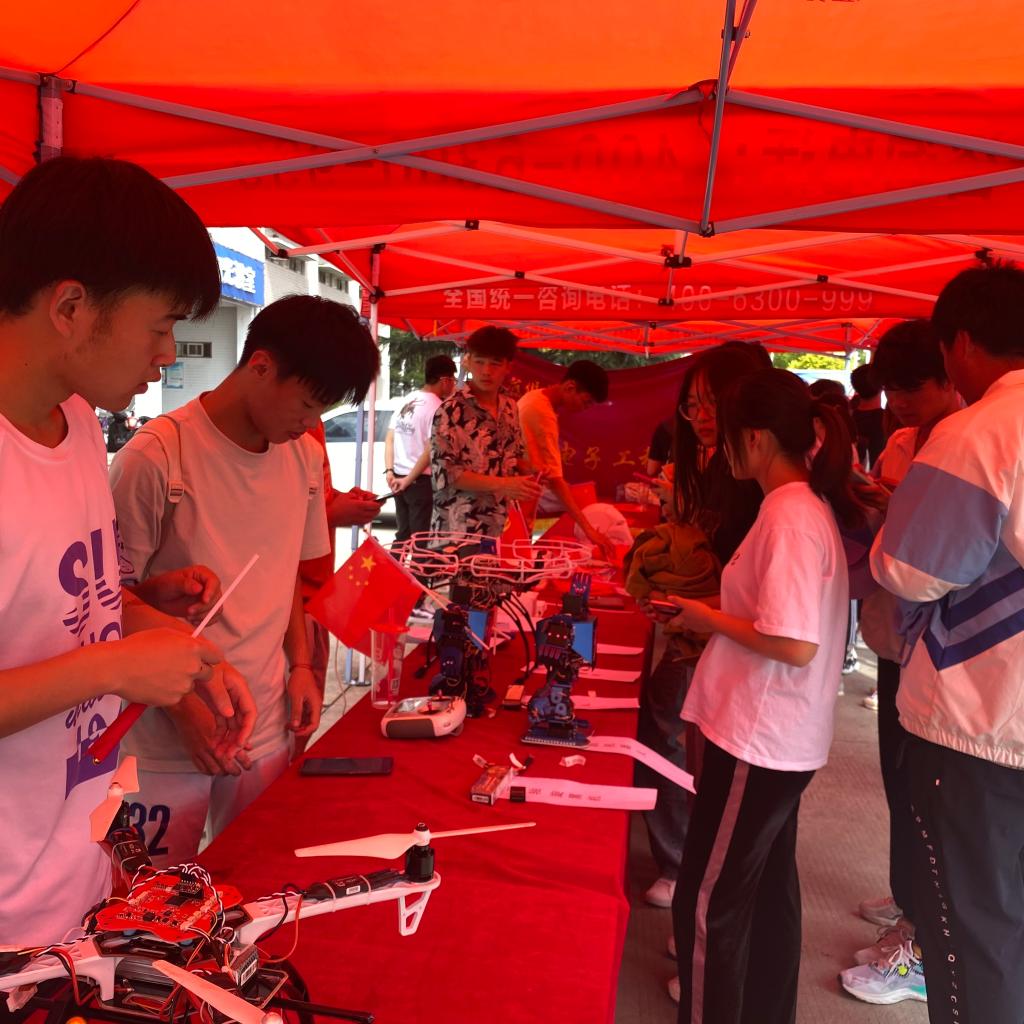 本次科技展共分机器人、无人机、3D打印设计作品区、省级获奖作品区四个展区。所有作品为学生原创科技作品,曾在机械创新设计大赛、电子设计大赛、中国机器人大赛等赛事中荣获佳绩。作品中不仅有3D打印机制作出天安门、喜庆国庆的立体作品,有舞蹈机器人“小梦与小想”伴随着《我和我的祖国》跳起欢快的舞蹈,还有无人机“小飞侠”升起国旗在空中迎风飘扬。活动吸引了大批学生驻足观看,同学们在现场观看作品操作演示,在青春告白祖国签名墙上签名留言,与国旗留下庄重而神圣的合影,以此表达对祖国的祝福。