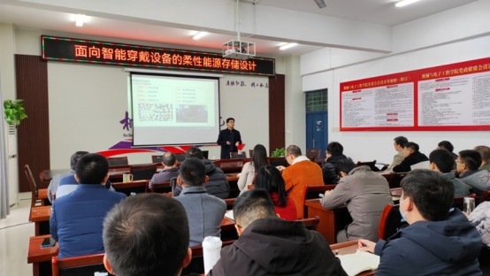 交流会设置了青年博士教师专题汇报和校外专家讲座交流两个环节。青年博士教师专题汇报由机电学院科研副院长刘从虎主持,在该环节中我院青年教师牛晓飞、赵广振、李彦江、赵力涛、陈王伟、韩卢、姜广申、李恒征、尹自信和张立锋等十余位博士围绕磁性材料、超级电容、太阳能电池及器件、生物质材料、超疏水功能表面、MXene、矿物研磨和金属合金材料等方面进行了汇报,介绍了当前研究中的最新进展和科研心得。余彦教授和吴明在教授对青年博士们的研究表示了肯定,解答了青年博士教师们在研究中的困惑,并对他们当前研究中存在的问题提出了建议。机电学院院长朱光主持了校外专家讲座交流环节,朱院长对两位特邀嘉宾的到来表示了欢迎,并简要介绍了他们基本情况和科研成果。随后,吴明在教授做了题为“面向智能穿戴设备的柔性能源存储设计”的学术报告,余彦教授结合自身国家基金申请和评阅经历,围绕国家基金申请对与会人员进行了经验分享和交流。
