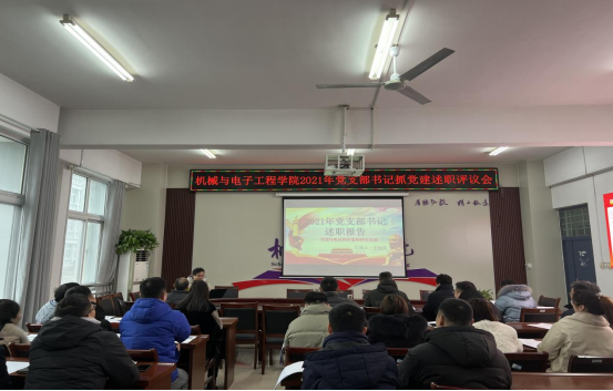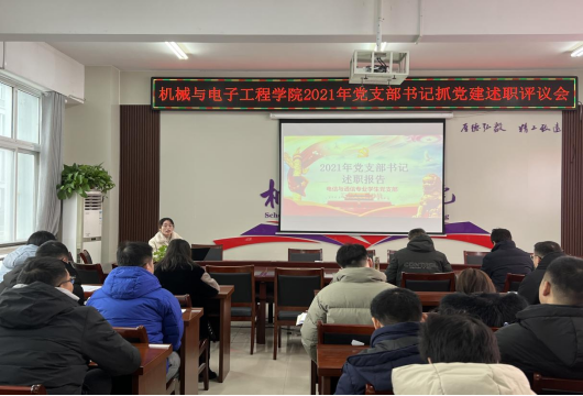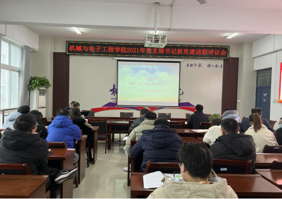 为进一步发挥党支部“七个有力”战斗堡垒作用和党员的先锋模范作用,推动全面从严治党向基层党组织延伸。2022年1月4日上午,机电学院在工科C楼三楼会议室召开2021年基层党支部书记抓党建工作述职报告会,机电学院党委委员、党支部书记、党支部委员、党员代表参加会议,会议由机电学院党委书记杨杰主持。