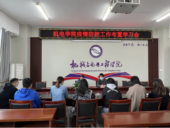 4月5日上午,机电学院召开疫情防控工作紧急会议传达全省教育系统疫情防控工作视频调度会和学校疫情防控工作部署会精神。学院全体辅导员(班主任)、各班学生干部代表分别参加了会议,会议由党委副书记、纪委书记房爱东主持。