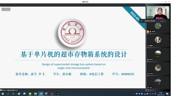为贯彻落实宿州学院关于新冠肺炎疫情防控工作要求,保证线上答辩顺利开展,电信教研室提前进行答辩预演,测试视频会议平台及网络情况。本次答辩采用线上方式进行,共有5个答辩组157名毕业生参加。学生就论文(设计)的研究内容、分析方法、研究结论、创新点及研究收获及答辩老师提出的问题等进行分组报告,答辩小组老师认真听取了学生的汇报,并就相关问题与答辩学生进行沟通交流,对于需要修改的论文(设计),答辩组老师给出了有针对性的意见和建议。