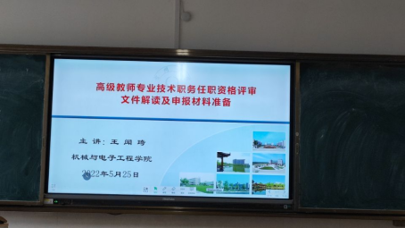 5月25日下午3:40,机电学院王闻琦教授应学院邀请为我院青年教师开展主题为职称评审文件解读及申报准备的讲座。讲座由机电学院科研副院长主持。