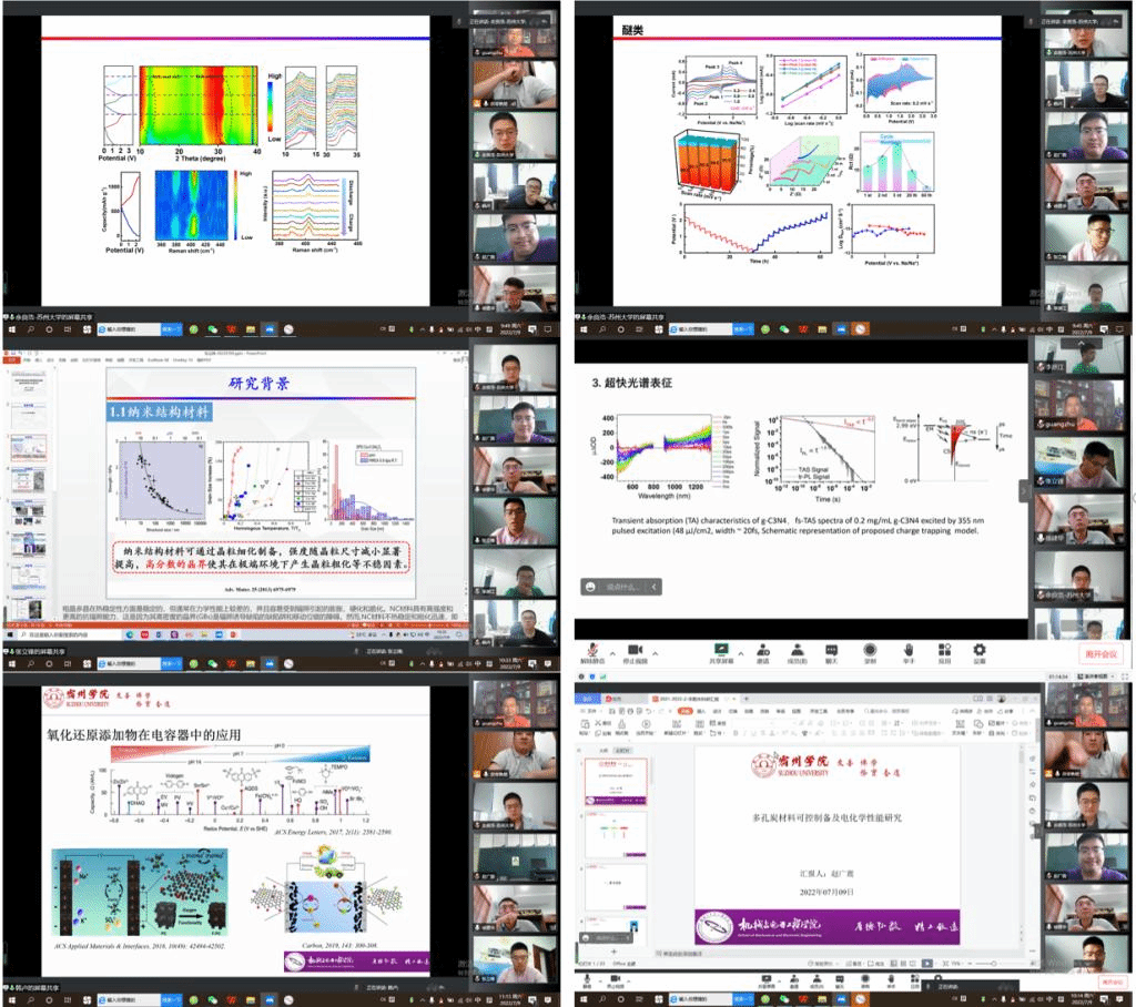 首先,各位博士依次介绍了自己的学术研究背景、内容和计划:1)余良浩博士介绍了过渡金属化合物在钠离子电池的研究情况;2)赵力涛博士汇报了0D/2D材料在超快荧光光谱的研究情况;3)赵广震博士介绍了多孔炭材料的可控制备及其在电容性能方面的研究;4)张立峰博士介绍了3D打印方面钛合金材料的研究内容;5)韩卢博士介绍了水系锌储能方面的研究;6)李彦江博士介绍了电容去离子淡化苦咸水或海水淡化方面的研究。在随后的互动讨论环节,徐建华教授对参会博士的汇报进行了点评,指出他们在科研工作中存在的不足和改进方法;最后,朱光对本次交流活动进行了简短的总结,并对学院假期的科研工作进行了部署。
