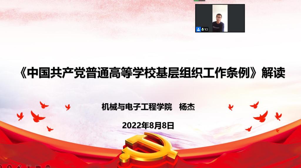 会上,杨杰带领大家专题学习了《中国共产党普通高等学校基层组织工作条例》,从《条例》修订的背景、原则和修订的主要内容、重点内容、学习贯彻《条例》的几点体会进行了详细阐释,通报了暑期学院“双创”项目和安徽省思想政治工作示范点申报情况,要求各党支部坚持问题导向和目标导向,张弛有度,暑假不停歇,工作不断线,创新“三会一课”方式方法,系统整理党建工作思路,做好毕业生党员组织关系转接的跟踪指导服务,把责任落到实处,把措施变为行动,把行动变成实效,不断推进学院事业发展新局面。