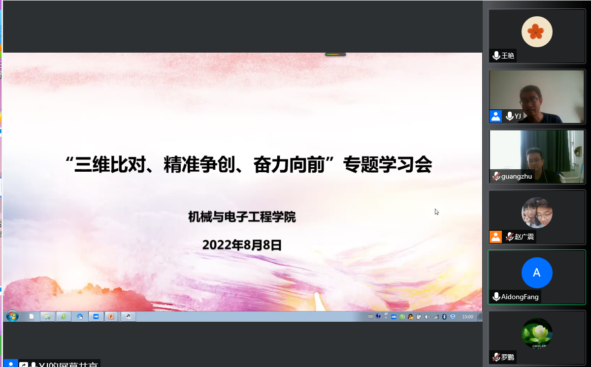 为进一步推进争先创优活动深入开展,根据《关于开展“三维比对、精准争创、奋力向前”争先创优活动方案》要求,8月8日上午和晚间,机电学院线上分别召开了党建工作学习会议和国家自然基金撰写与申报学习交流会,会议分别由党委书记杨杰和院长朱光主持,全体教职工参加。