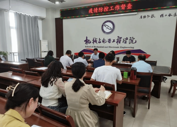 学校疫情防控工作领导小组认真检查了机电学院疫情防控工作的落实情况,听取了相关工作汇报,勉励学院师生再接再厉,不要有丝毫松懈,全面筑牢疫情防控防火墙。