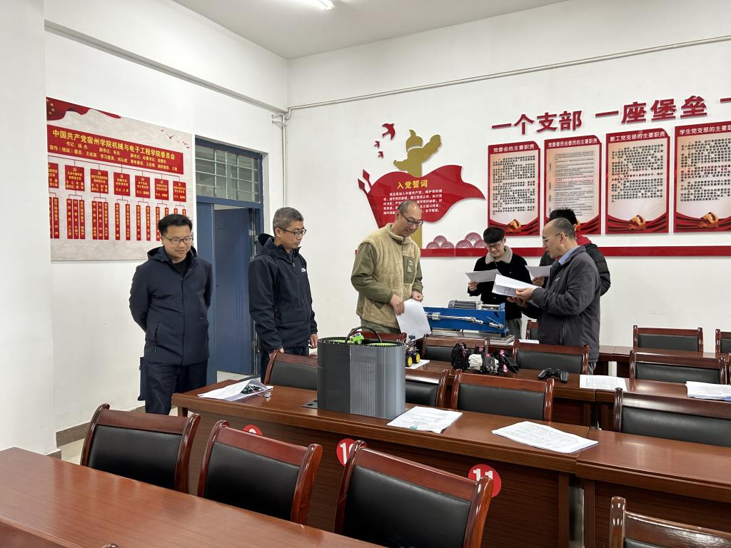 机电学院根据校团委要求,成立了专家评审小组,党委书记杨杰、科研副院长刘从虎、教研室主任李明、赵张飞老师、王楠老师、李强老师作为评委参与评审。此次比赛同学们精心准备,踊跃报名,共有21组科技发明制作B类作品参赛,各小组从参赛作品的创新性、应用性、科学性和实用性等方面进行现场展示,评委对各组作品进行现场评审并提出了改进意见。