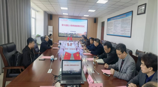 张久俊院士对宿州学院的信任和聘任表示衷心的感谢,他介绍了自己的学术发展经历,表示十分期待与我校的合作,希望在接下来的合作中充分发挥多年积累的科研工作经验,为学校学科建设、科研团队建设、青年人才培养等作出贡献,助力学校高质量发展。
