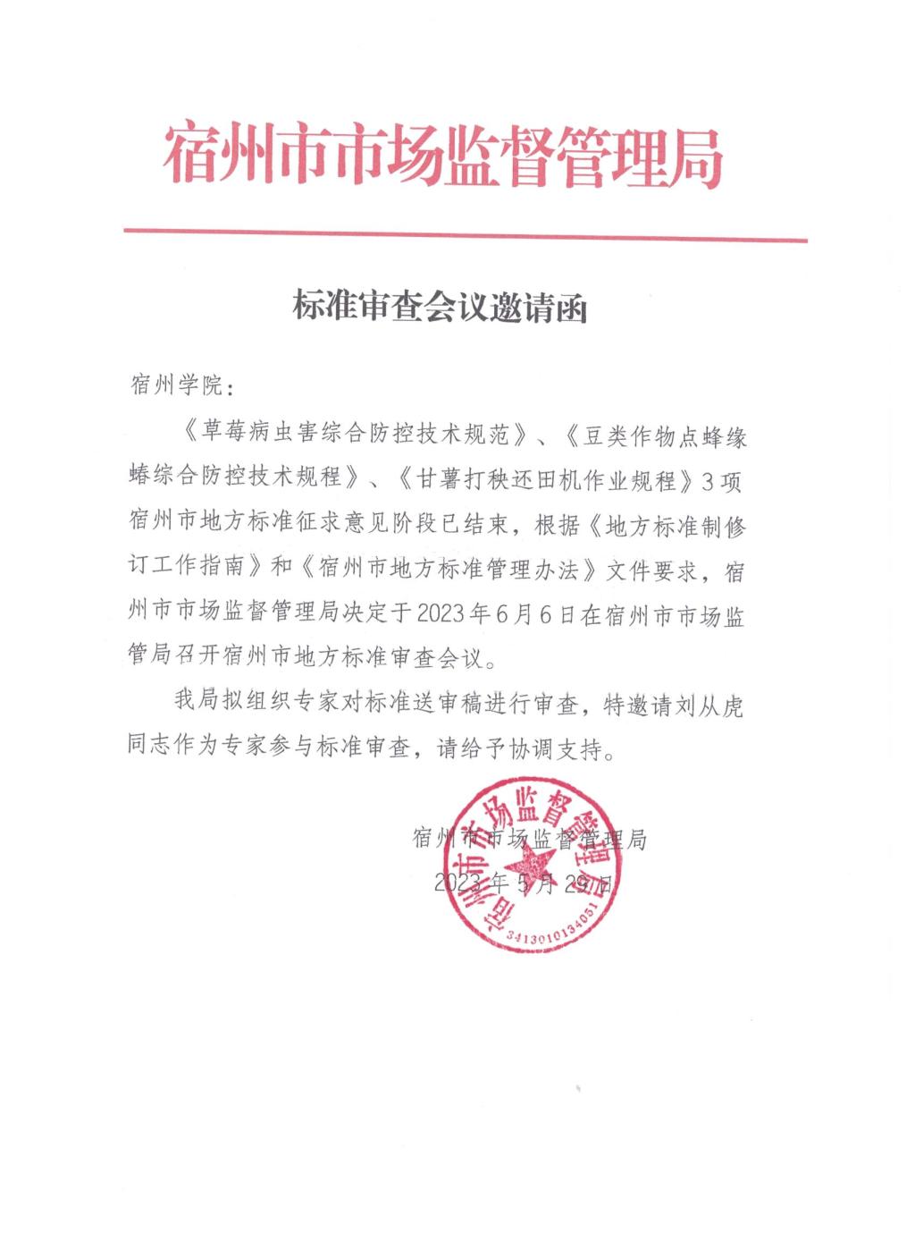 为不断提升宿州市地方标准质量,优化地方标准体系,根据《地方标准制修订工作指南》(DB34/T 2800-2020)和《宿州市地方标准管理办法》, 宿州市市场监督管理局于 2023年6 月 6 日在宿州市市场监管局召开《 设施菜田土壤技术修复技术规范》等5 项宿州市地方标准审查会议。