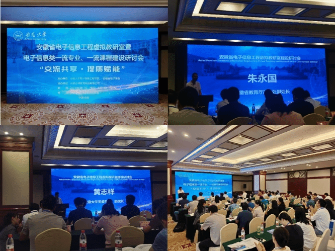 为了提高专业建设水平,提升创新人才培养质量,8月17-18日,电子信息工程专业教研室部分教师参加了安徽省电子信息工程虚拟教研室暨电子信息类一流专业、一流课程建设研讨会。本次会议由安徽大学电子信息工程学院牵头,安徽建筑大学、安徽农业大学、黄山学院、阜阳师范大学、合肥学院、合肥师范学院、池州学院、安徽芒课科技教育有限公司共计9所高校和公司的骨干成员参加了会议并做充分交流。