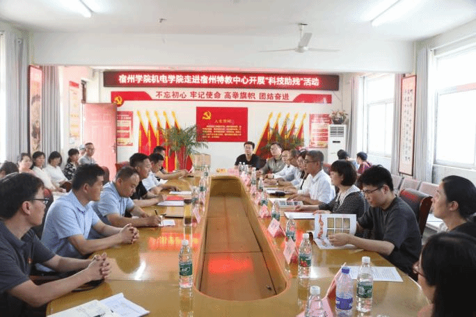 5月31日下午,宿州学院机电学院党委书记杨杰带领师生代表一行15人,走进宿州市特教中心开展“科技助残”活动。