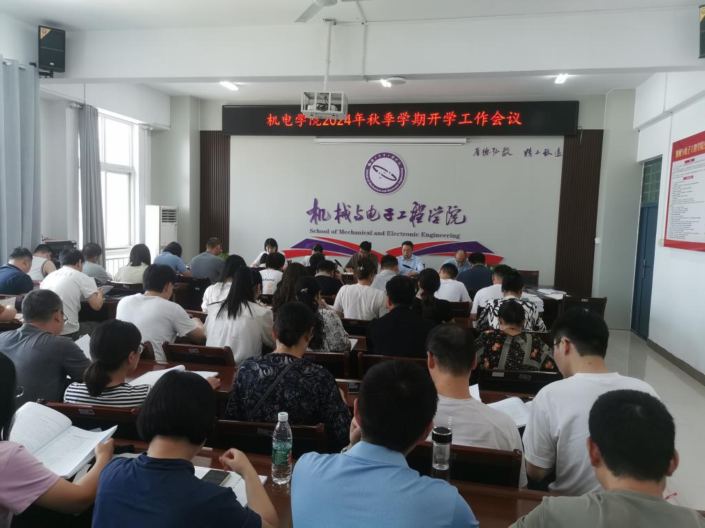 8月30日上午,机电学院2024年秋季学期开学工作会议在工C302会议室召开,机电学院领导班子成员及全体教职工参加会议,会议由院长林永主持。