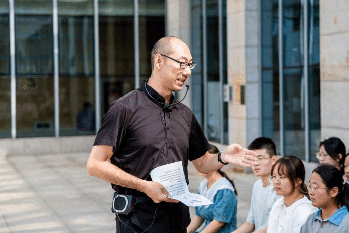 各组学生参观结束后,黄凯、自动化教研室教师党支部副书记郭凯为各组同学们讲述汴河精神,感悟劳动的魅力。黄凯结合新汴河的前世今生及不平凡的四年开挖历史,强调作为青年大学生要高度重视劳动教育,树立正确的劳动观,要达到“四不做、四要做”:不做不劳而获的投机者,不做依赖长辈的啃老族,不做碌碌无为的慵懒人,不做不思进取的躺平人;要做艰苦奋斗的勤劳人、要做熟练巧干的技能人、要做敢于超越的创新人、要做劳动取酬的幸福人。