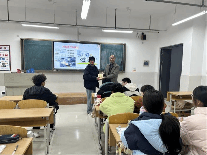 随后,仪式进入了激动人心的教材与小礼品发放环节。李明老师为每一位学员送上了精心准备的教材包和寓意深远的小礼品。教材不仅涵盖了新能源汽车技术的前沿理论与实践案例,还融入了国内外最新研究成果,旨在为学生提供全面、系统的知识体系。小礼品则是一份特别的纪念,寄托了对学员们学业有成、未来可期的美好祝愿。学员代表在发言中表示,能够成为新能源汽车制造工程微专业的首批学员感到非常荣幸与自豪,将珍惜这次学习机会,努力学习专业知识,积极探索,为将来投身于新能源汽车行业,为实现绿色出行梦想而不懈奋斗。仪式最后,老师们对全体学员提出了殷切期望,鼓励大家珍惜时光,勇于创新,不仅要学好专业知识,更要培养解决复杂工程问题的能力,成为新能源汽车领域的中坚力量。随着合影留念的温馨画面定格,宿州学院新能源汽车制造工程微专业简单而温馨的开班仪式圆满落下帷幕。这不仅是宿州学院教育事业发展的一个新起点,也是我国新能源汽车人才培养蓝图上的一丝亮丽色彩。未来,该专业将秉持“创新引领、绿色发展”的理念,持续为社会输送高质量的新能源汽车技术人才,助力我国新能源汽车产业蓬勃发展。