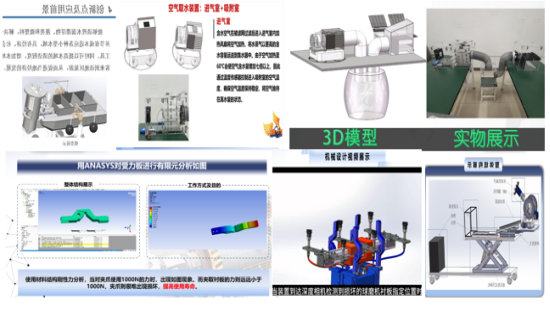 在全国总决赛中,宿州学院参赛团队面对哈尔滨工业大学、华中科技大学、吉林大学、合肥工业大学等众多双一流高校竞争对手时,仍能沉着冷静应对。最终凭借良好的作品创意,新颖独特的设计,详实的作品视频介绍,设计合理的三维数据模型,以及对研究背景、工作原理、创新点、应用前景的清晰讲解,设计任务流程的完整展示,实物模型现场精彩展示及实验等,表现出了较好的专业水平和精神风貌,赢得了评审专家的认可。