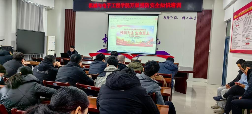 12月25日下午,机电学院在工科C楼三楼大会议室成功举办了消防安全知识培训活动。本次培训由宿州市安民消防技术服务有限公司主讲,旨在提高学院师生的消防安全意识,增强应对火灾等突发事件的自救能力。