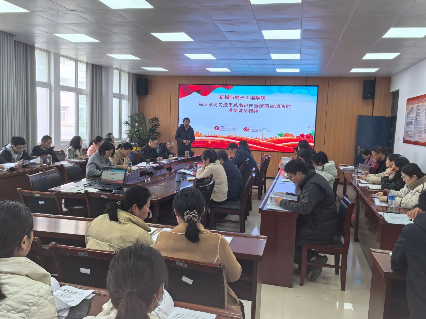 为进一步提高教师学好理论、用好政策的自觉和水平,机电学院党委在工C306会议室举办学习贯彻习近平总书记在全国两会期间的重要讲话精神和全国两会精神专题辅导。院党委书记黄凯作主旨发言。院党委副书记、院长林永主持,全体党委委员和教师参加了学习宣讲活动。