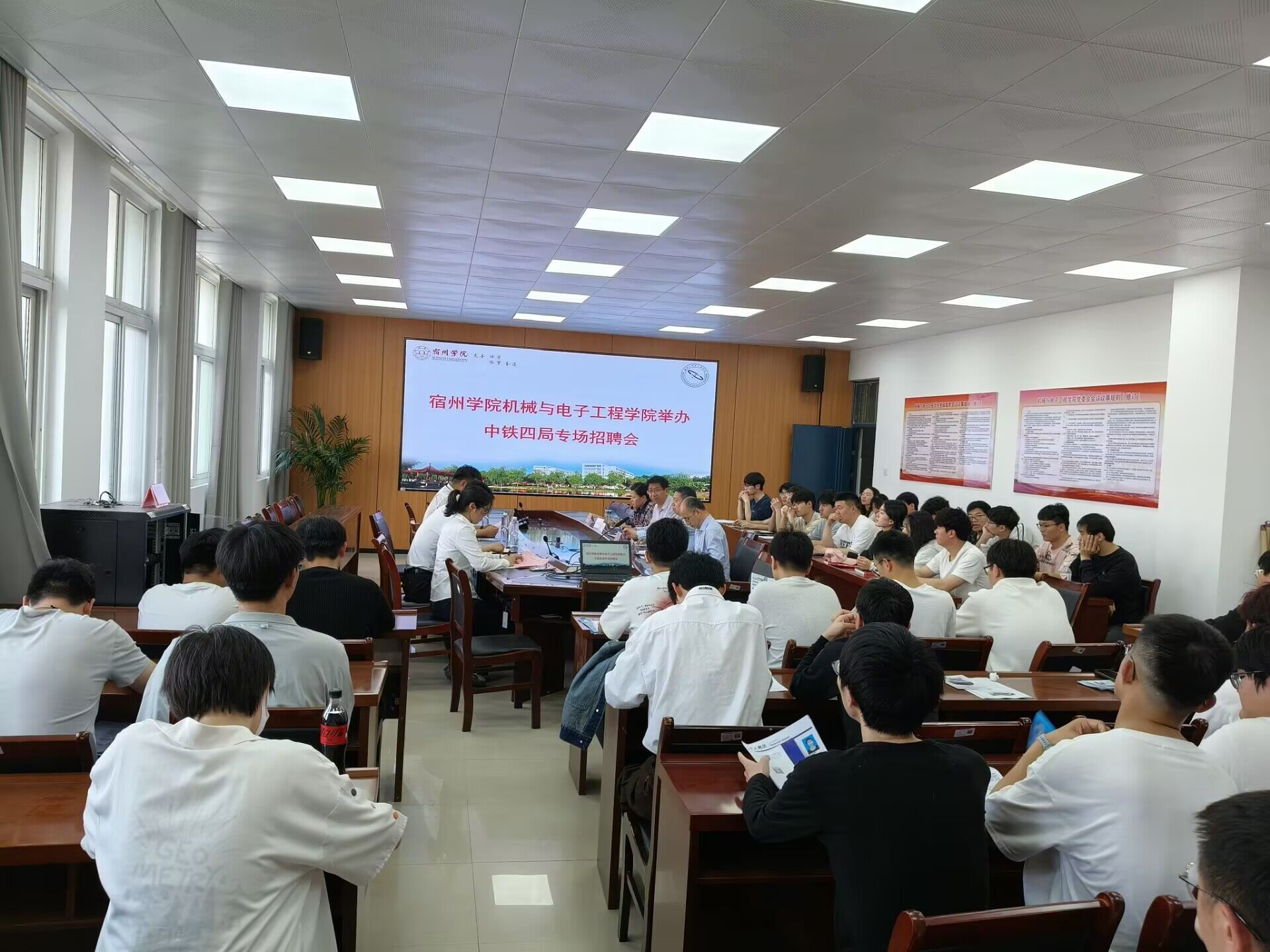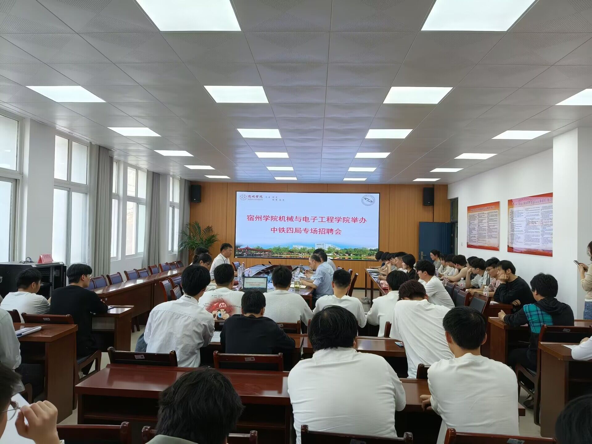 在深入贯彻中央八项规定精神学习教育之际,为持续推进机电学院2025届毕业生就业工作,强化密切联系学生、切实关爱学生、真诚服务学生的理念,机电学院3月26日下午在学院大会议室举办了中铁四局专场校园招聘会。中铁四局四公司人力资源部门领导参加了招聘宣讲和交流活动。学院党委书记黄凯主持活动。学院党委副书记、院长林永和领导班子其他成员、学生事务科科长、毕业班辅导员和部分2025届毕业生共同参加了此次招聘活动。