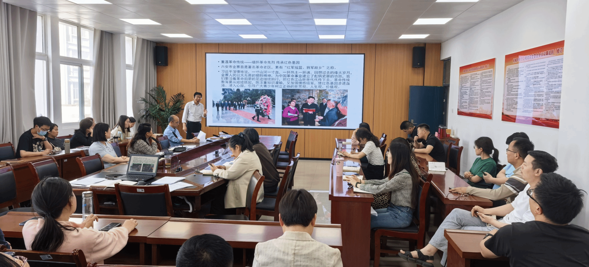 4月30日,机电学院在工C308会议室举办“学习贯彻习近平总书记三次考察安徽重要讲话精神”专题讲座。讲座强调要提高政治站位,强化使命担当,严格纪律规矩,以钉钉子精神抓好改革落实,不断推进学院在落实立德树人根本任务、推进高质量发展中取得新成绩。学院党委书记黄凯主讲。副院长王桂英主持,全体教师参加了活动。