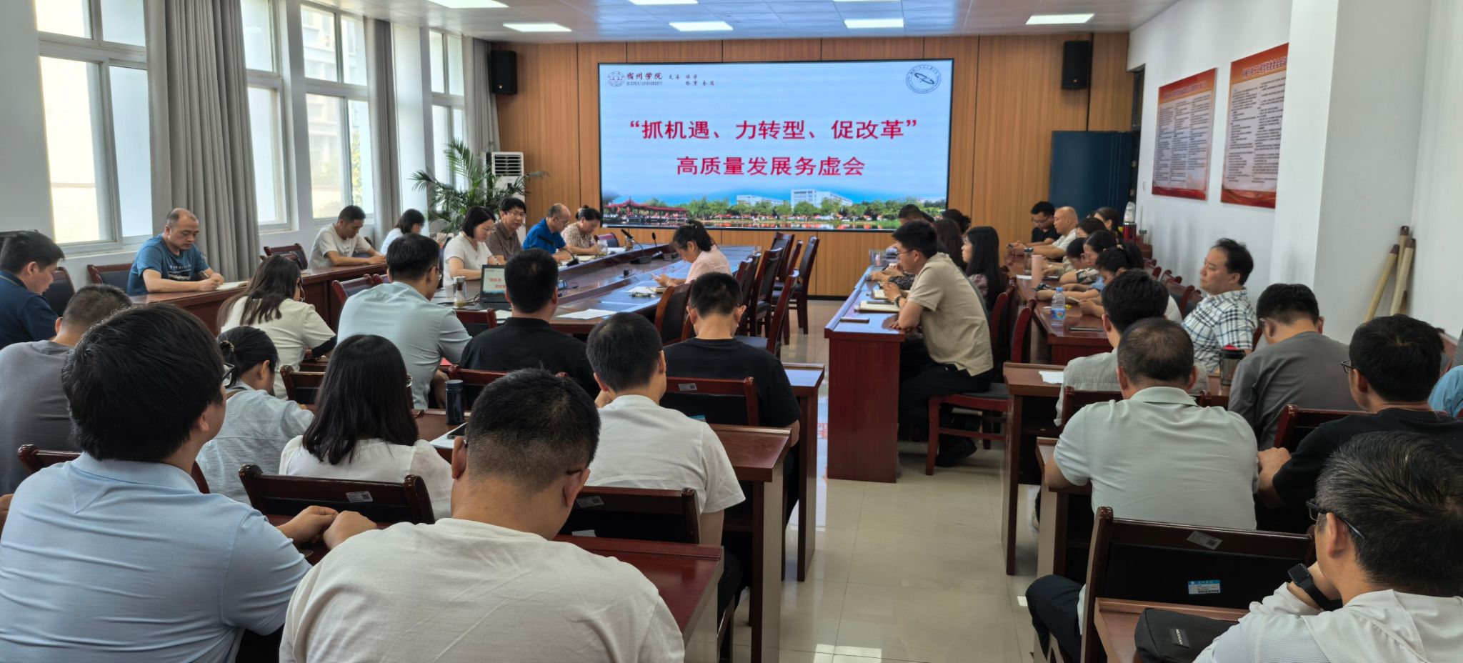 6月4日,我院在三楼会议室召开“抓机遇 力转型 促改革”高质量发展务虚会,进一步解放思想,瞄准安徽省“三地一区”战略定位,抓住统筹推进教育科技人才一体化发展新机遇,全力做好学院转型升级发展的政治自觉、思想自觉、行动自觉,深化学院管理服务与教育教学改革。会议由学院党委书记黄凯主持,院党委委员、中层管理人员及全体教职工参加了活动。