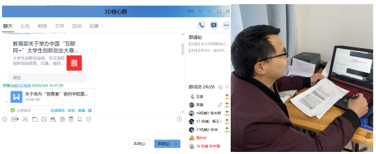 突如其来的新冠肺炎疫情延迟了春季新学期的开学。机电学院3D创新实验室严格落实学校疫情防控工作部署,精心组织,制定周密措施,助力学生创新创业及科研能力提升。在学院领导的精心安排下,指导教师在线培养不停,学生科研创新的能力培养不停。