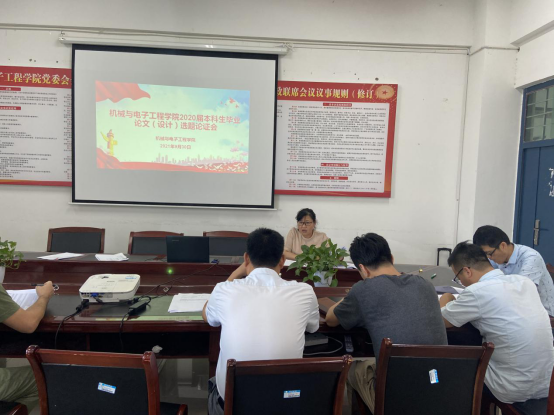 为规范本科毕业论文(设计)题目,提高2022届毕业论文(设计)质量,机电学院于2021年9月30日下午召开2022届毕业论文(设计)选题论证会。会议由教学副院长王桂英主持,全体教研室主任参加会议。