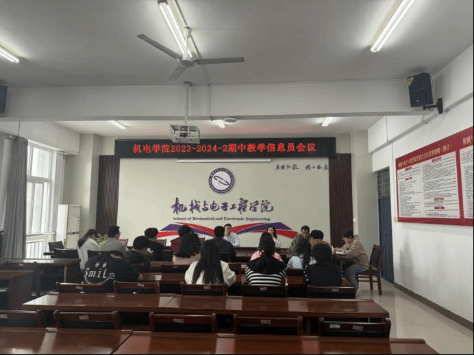4月10日下午,机械与电子工程学院在工C302召开了2023-2024学年第二学期期中教学信息员会议。院长林永、副院长王桂英、院教学督导、教学秘书及各班教学信息员参加了会议,会议由林永主持。