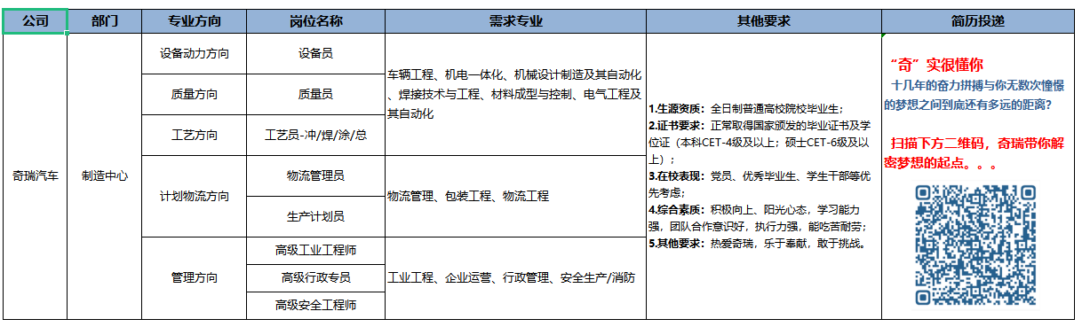 公司在国际、国内共建有十余个生产及KD基地,并在芜湖、上海、欧洲、北美、巴西等国家和地区布局六个研发中心。公司现有员工1.3万余人,拥有专业研发人员超过5000人,其中博士、硕士、海归人员等高层次人才1200多人。引进国外知名专家、管理人员300多人,拥有“国务院特殊津贴”、“国家友谊奖”专家、安徽省“黄山友谊奖”专家十余人。公司多次被评为“海外高层次人才创新创业基地”、“国家级引才引智示范基地”,先后荣获“全国模范劳动关系和谐企业”、“全国就业先进企业”、“中国最受尊敬企业”等荣誉称号。