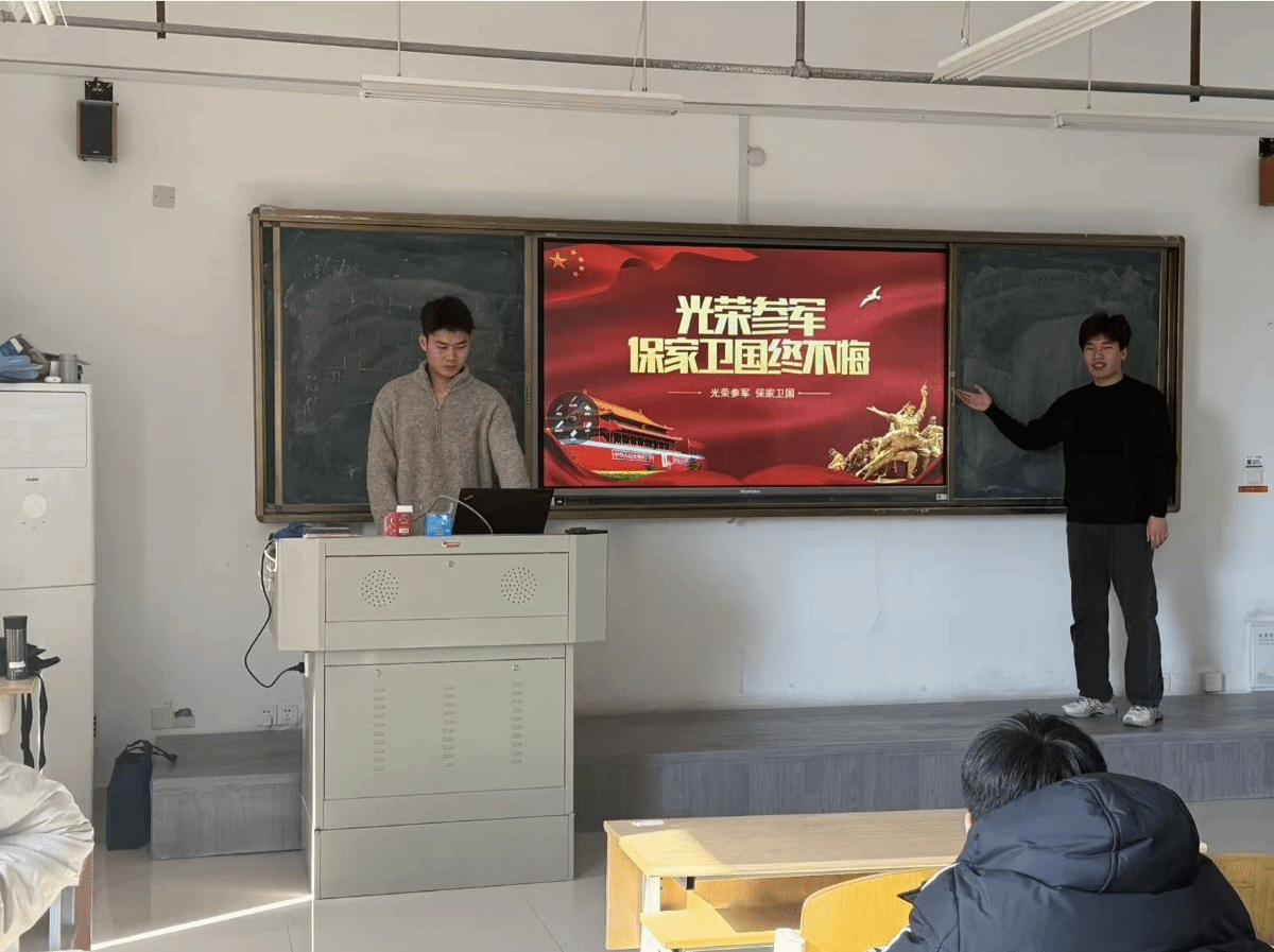 活动中,辅导员老师与学院“征兵宣传大使”组成宣讲团,走进各专业班级,围绕“火热军营 精彩人生”这一主题,组织召开专题班会与政策宣讲会。宣讲人员结合生动的征兵宣传片,向同学们详细解读了国家关于大学生应征入伍的优惠政策,包括学业保障、经济补助、升学就业、职业发展等方面的具体举措,深刻阐述了参军入伍对个人成长成才、实现人生价值的积极意义,以及对助力强军伟业、保卫国家安全的重要作用。