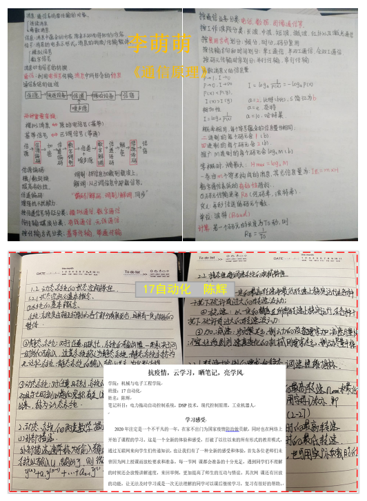 树立学习榜样,依托易班平台组织开展“抗疫情、云学习、晒笔记、亮学风”活动,各班级同学展示了线上学习期间的课程笔记,并遴选出一系列条理清晰、字迹优美的笔记进行展出,树立优秀学习榜样,营造良好的学习氛围。