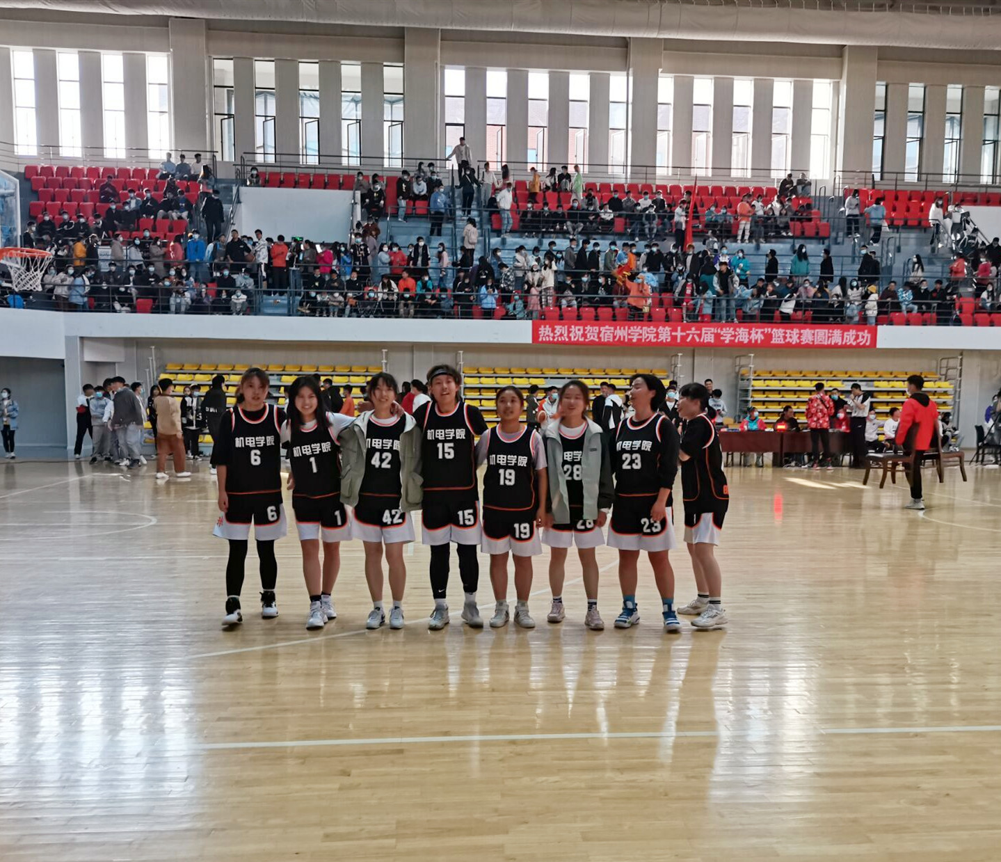 11月11日下午,宿州学院第十六届“学海杯”女子篮球赛的总决赛在东校区新体育馆篮球场举行。机电学院女子篮球队以七战七胜的优异成绩荣获篮球赛冠军,15号队员孙冉获得“优秀运动员”称号。