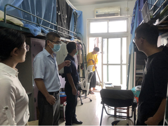 在走访学生宿舍时,杨书记亲切地与同学们交谈,了解了学生的暑期学习生活状态、思想动态,查看了宿舍卫生和安全情况,并就个别宿舍反应的空调漏水等问题现场联系后勤工作人员进行处理,帮助同学们解决了实际困难。杨书记叮嘱大家返校后要注意宿舍卫生和用电安全,秋季流感高发季节要开窗通风,加强体质锻炼,尽快调整生活作息,同学们听后纷纷表示一定会以饱满的精神状态和良好的身体素质迎接新学期的学习和生活。
