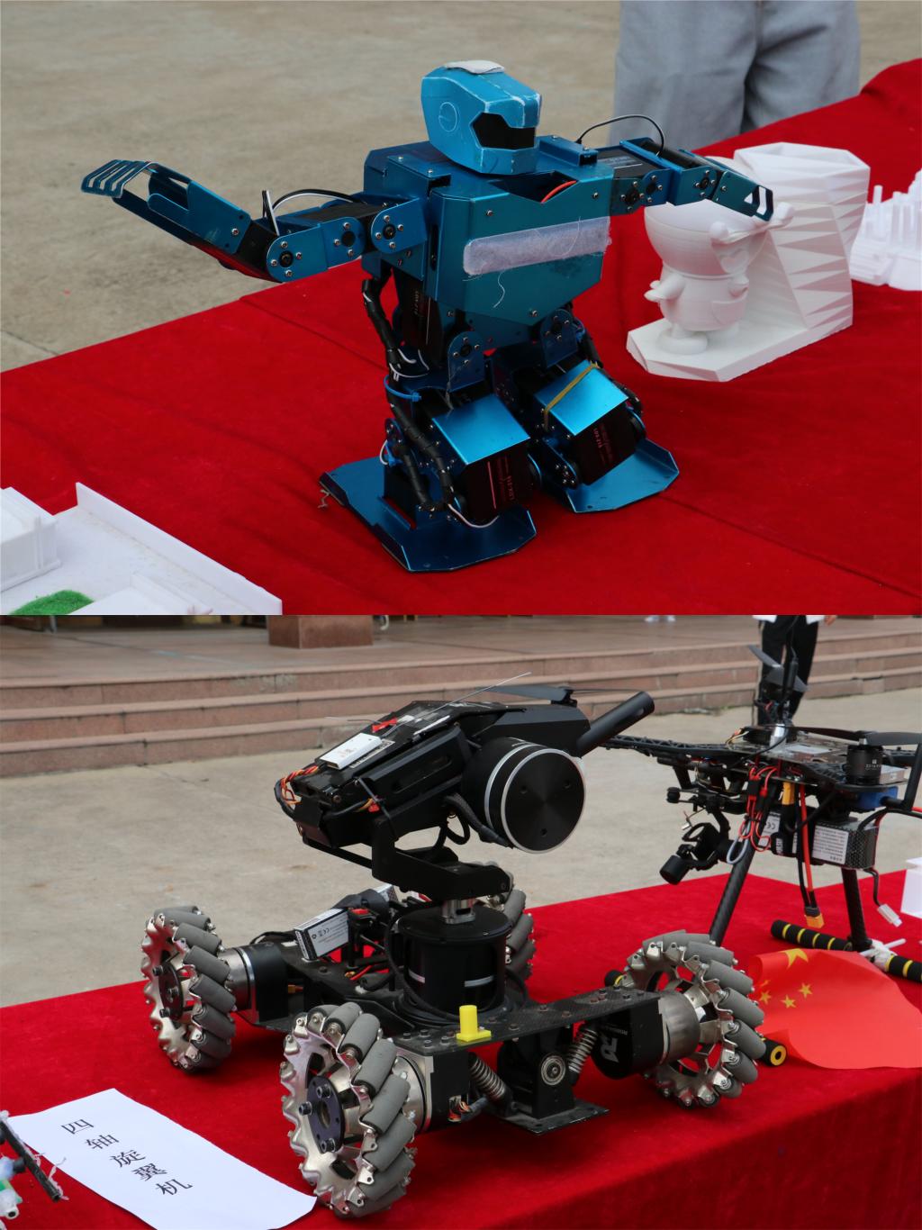 本次作品展共分机器人、无人机、3D打印设计作品区、省级获奖作品区四个展区。所有作品为学生原创科技作品,曾在机械创新设计大赛、电子设计大赛、中国机器人大赛等赛事中荣获佳绩。作品中不仅有3D打印机制作出天安门、喜庆国庆的立体作品,有舞蹈机器人“小梦与小想”伴随着《我和我的祖国》跳起欢快的舞蹈,还有无人机“小飞侠”升起国旗在空中迎风飘扬。活动吸引了大批学生驻足观看,同学们在现场观看作品操作演示,在青春告白祖国签名墙上签名留言,与国旗留下庄重而神圣的合影,以此表达对祖国的祝福。