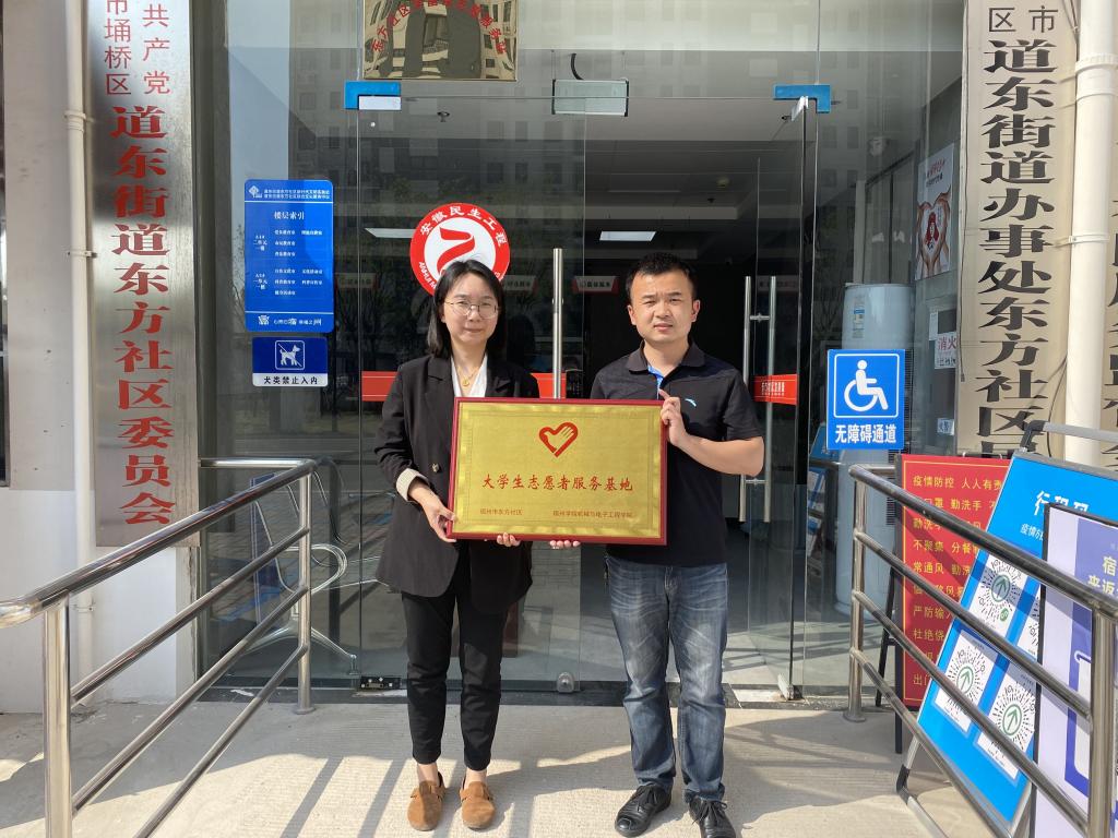 5月12日下午,机电学院与宿州市道东街道东方社区共同举办“大学生志愿者服务基地”签约仪式。