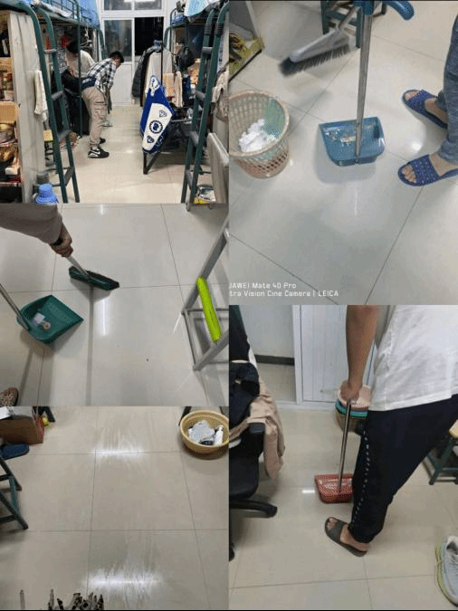 活动先在学生宿舍火热开展起来,宿舍成员们分工明确,打扫地面、整理桌椅、擦拭窗户,大家充分发扬不怕苦、不怕脏的精神,不放过任何一个卫生死角,各个忙得不亦乐乎。