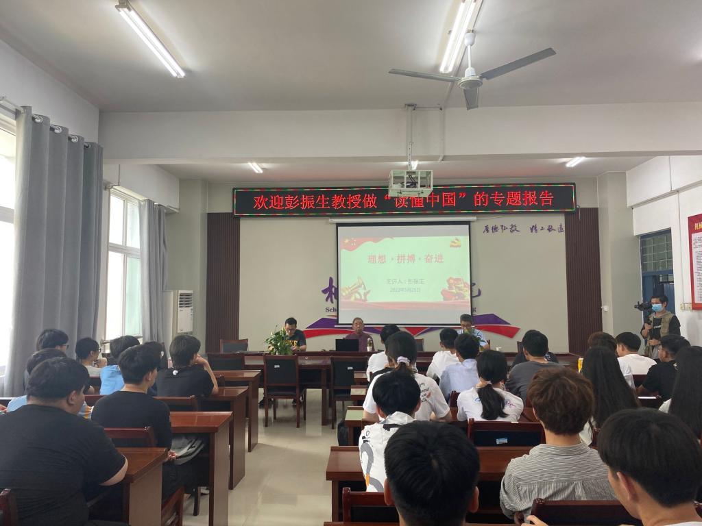 彭振生教授以“追求改变”为题,与青年学生分享了自己从1963读高中至今的人生奋斗历程和真实感悟寄语同学们“人的一生,就是不断追求改变的过程。好比爬山,由山坡一直往上爬。无限风光在险峰,不怕困难,顽强拼搏,志存高远,不达目标决不罢休。”对青年学生未来的学习生活提出了更高的要求,激励青年学生不要辜负美好的青春年华,要努力学习,走好大学之路,走好人生之路。彭教授用丰富的人生阅历、渊博的知识、深厚的理论功底、通俗的表达,为同学们带来了一堂生动的思想政治理论课。青年学生纷纷表示深受鼓舞,倍感振奋,要向彭教授学习,努力奋斗,做爱国、励志、求真、力行的新时代大学生,