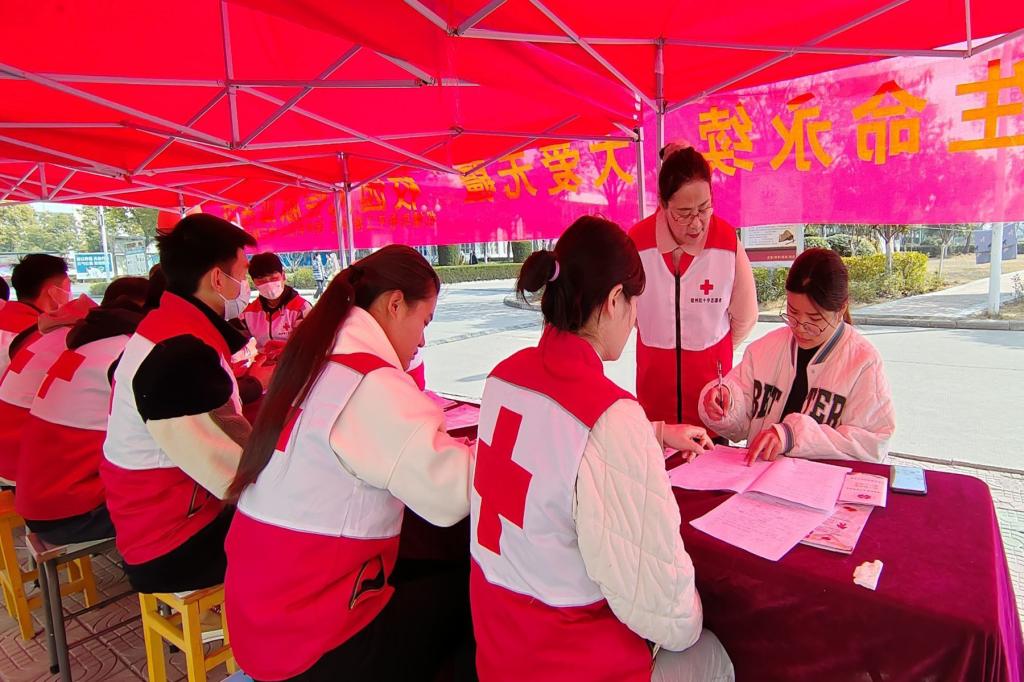 活动现场,志愿者积极宣传无偿献血和造血干细胞捐献知识,配合血站工作人员进行采血前的各项准备工作,对前来参与献血的同学进行健康状况征询。对符合献血条件的同学依次引导进行信息登记、血液类型检验、静脉采血等环节,活动过程井然有序。宿州市红十字三献志愿服务队的志愿者们也到现场进行交流和指导。两天时间,共有108名师生献血,总献血量达28000ml,其中3人加入中国造血干细胞捐献者资料库。