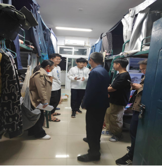 为了进一步了解学生宿舍生活情况,我院党委书记杨杰、副书记房爱东与全体辅导员一起深入学生寝室。