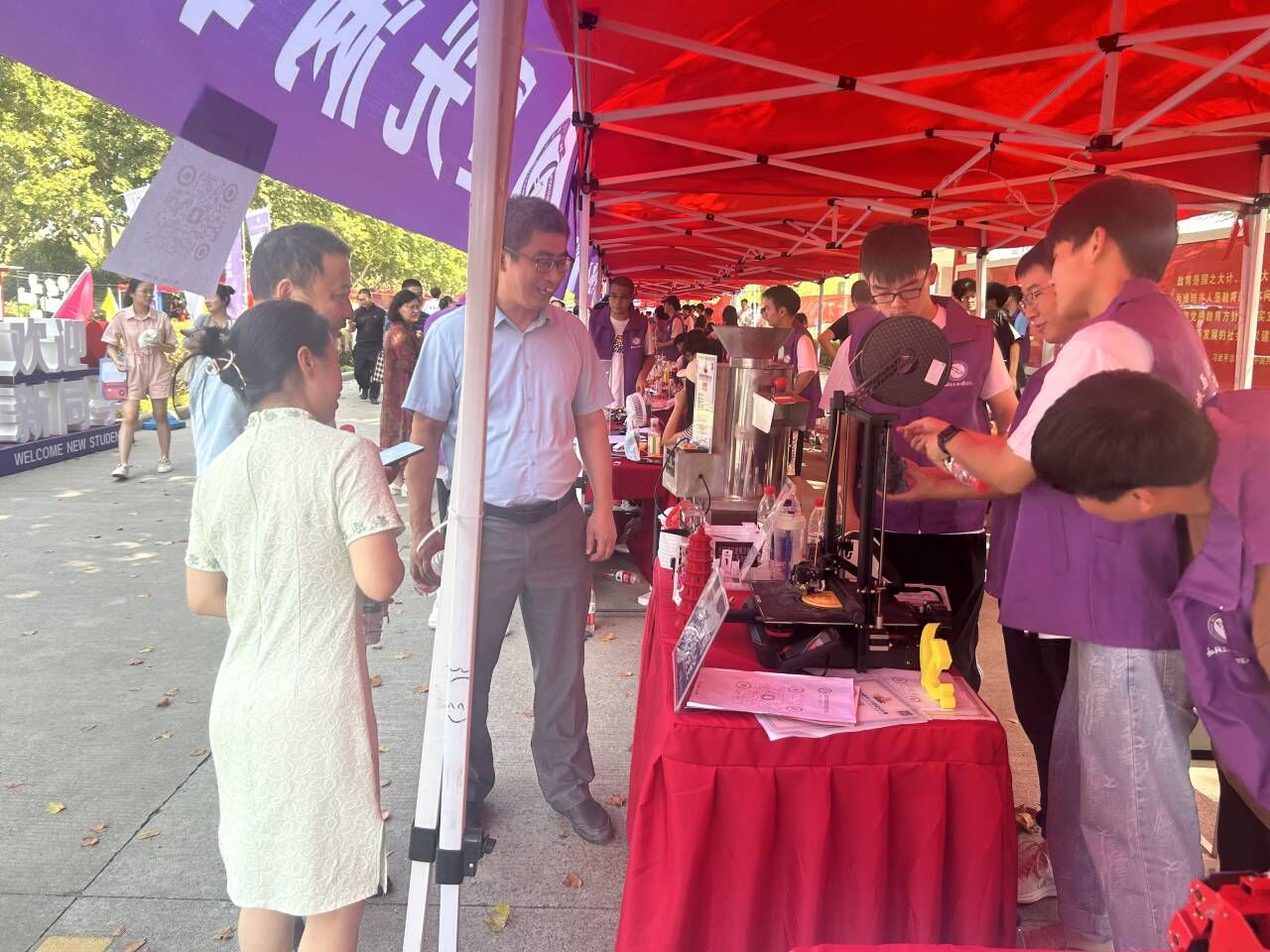 迎新前期,学院高度重视此次迎新工作,召开迎新工作专题会议,制定详细的迎新工作方案。迎新现场,设立了学科竞赛成果展台,展示了机械创新实验室、电子创新实验室、3D打印应用创新中心的学生作品,通过迎新志愿者的专业演示与讲解,让新生和家长们在展示中感受科研魅力,加强对专业的进一步认识。