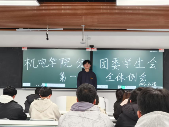 为推动院学生会组织工作高质量发展,深化新学期学生干部队伍建设,2025年2月28日晚18:20,机械与电子工程学院分团委学生会第一次全体例会在实训楼A315顺利召开。分团委学生会全体成员共同参与此次会议。
