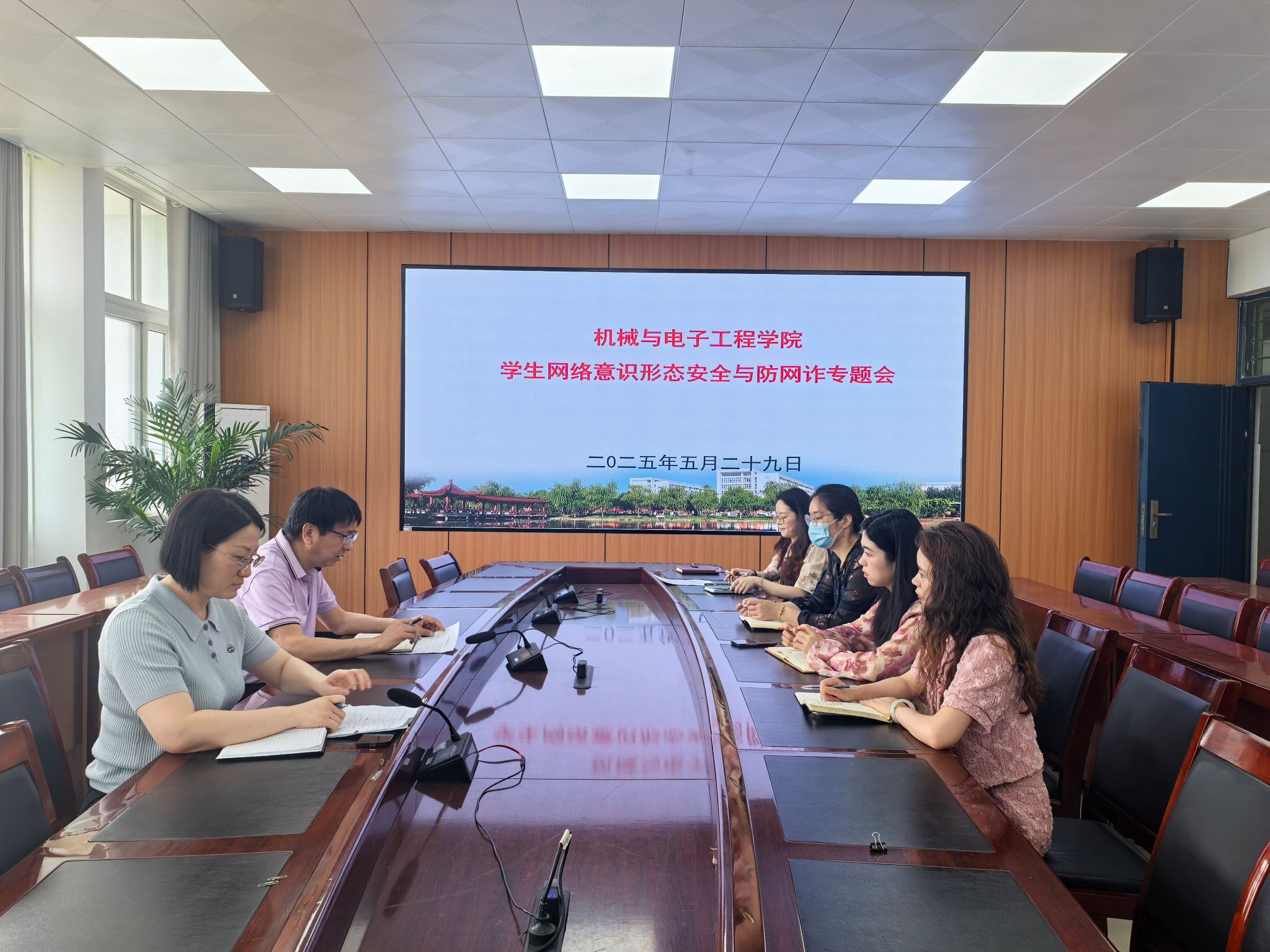 5月29日,机电学院在工C306会议室召开学生网络意识形态安全及防网络电信诈骗专题会,通报校园安全事件典型案例,提高学生安全意识,增强防范风险主动性。会议由党委书记黄凯主持,党委副书记、纪委书记王艳、全体辅导员参加了活动。