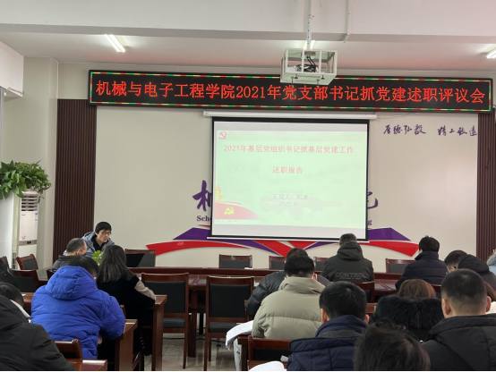 为进一步发挥党支部“七个有力”战斗堡垒作用和党员的先锋模范作用,推动全面从严治党向基层党组织延伸。2022年1月4日上午,机电学院在工科C楼三楼会议室召开2021年基层党支部书记抓党建工作述职报告会,机电学院党委委员、党支部书记、党支部委员、党员代表参加会议,会议由机电学院党委书记杨杰主持。