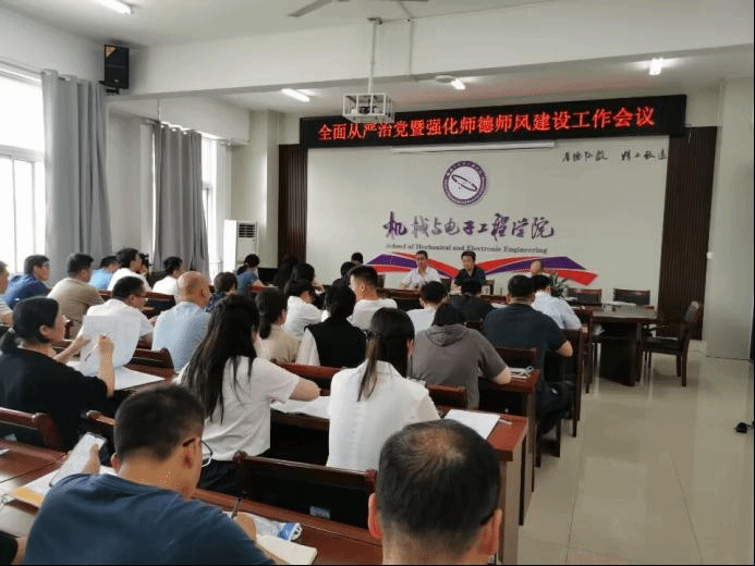6月28日下午,机电学院在工科C楼三楼大会议室召开全面从严治党暨强化师德师风建设工作会议。机电学院全体教职工参加会议,会议由机电学院党委书记杨杰主持。